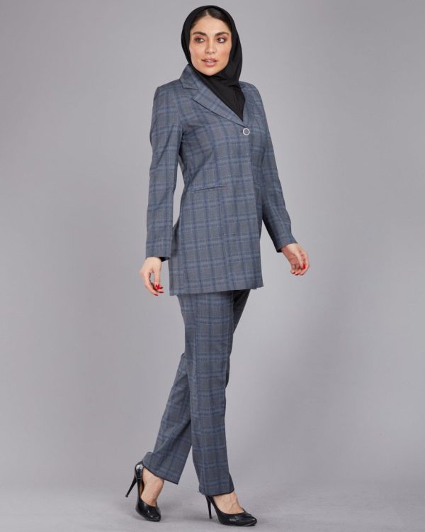 مانتو کت شلوار یقه انگلیسی چهارخانه